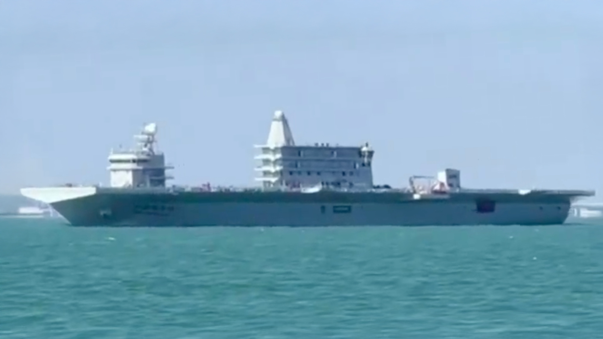 The reports first started circulating online when Douyin user Lac59888 posted a video of the vessel sailing out of Guangzhou Shipyard International in Longxue Island, Guangzhou. The vessel clearly shows three island-like structures on the deck. This would be the second carrier currently in the testing phase in China, alongside the PLAN’s new Type 003 Fujian supercarrier.