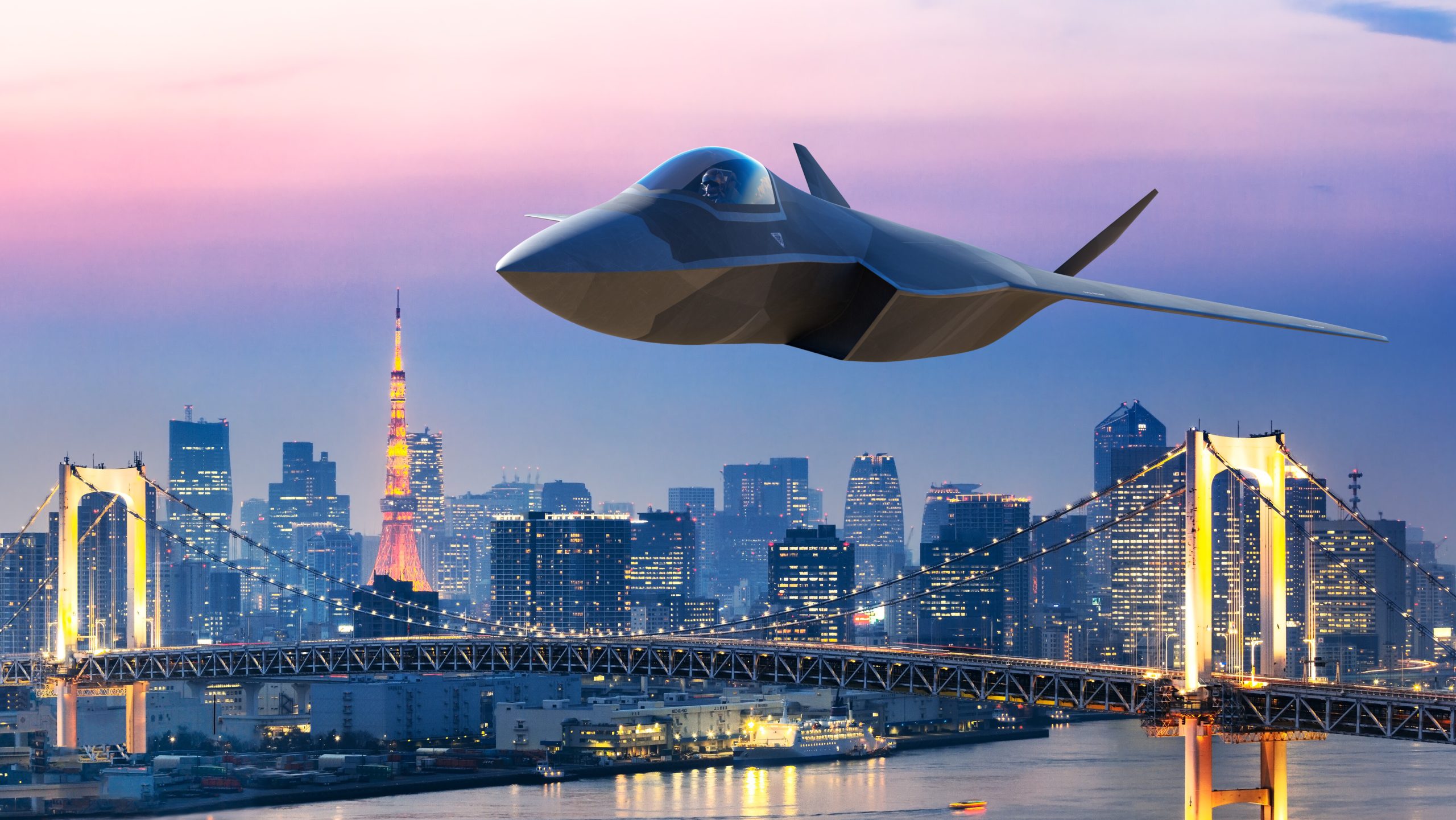 An artist’s render featuring the future GCAP flying over Tokyo. (Image credit: Leonardo)