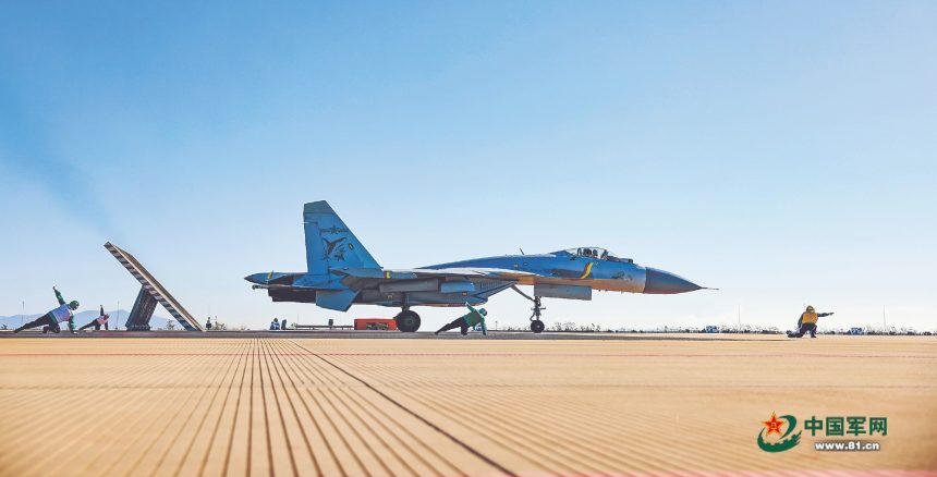 Sometime between late November and early December 2024, a brigade with China’s Naval Aviation University conducted takeoff and landing training on J-15 fighters in an unnamed military airport “near the coast”. The particularity of this exercise was the use of a land-based simulated carrier deck, which included jet blast deflectors and arresting cables.