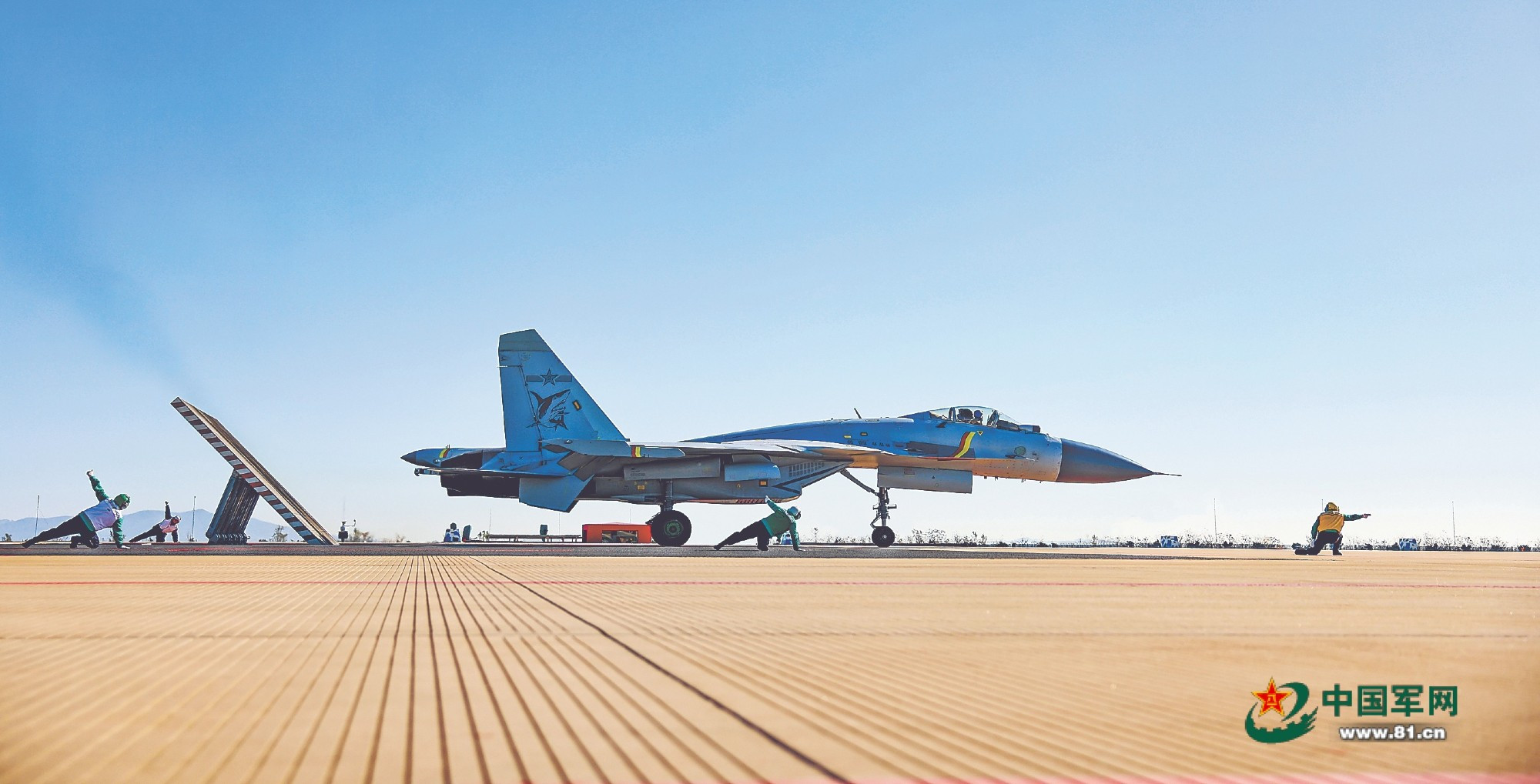 Dec. 17 — China PLA Naval Aviation University conducted field carrier takeoff and landing practice with J-15 carried-based fighter aircraft.