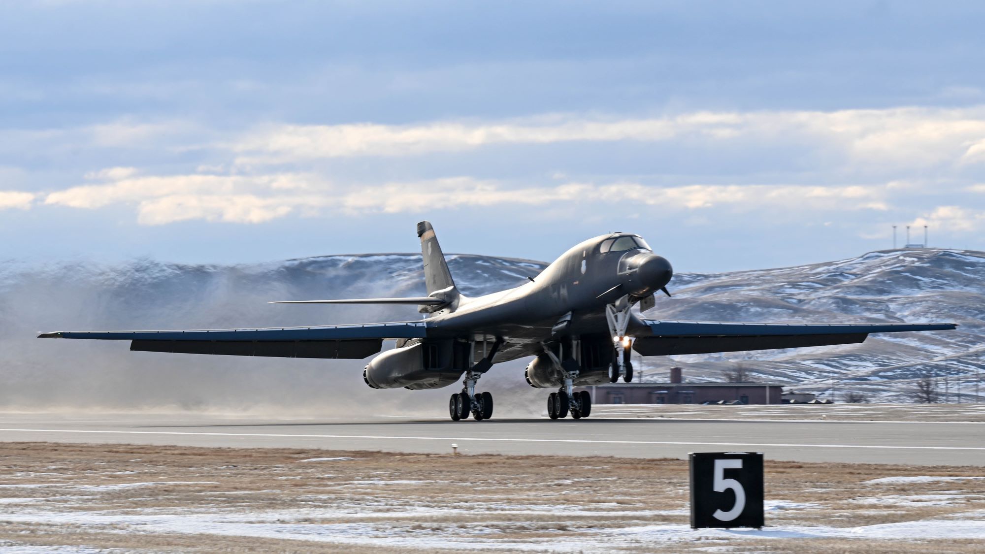 The last of the 17 B-1B Lancer bomber aircrafts from Ellsworth AFB (Air Force Base), South Dakota, assigned to the 28th Bomb Wing (28th BW), flew to Grand Forks AFB, North Dakota, on Jan. 22, 2025. The aircraft moved as part of a 10-month temporary relocation as Ellsworth undergoes runway works to prepare for the arrival of the new B-21 Raider.