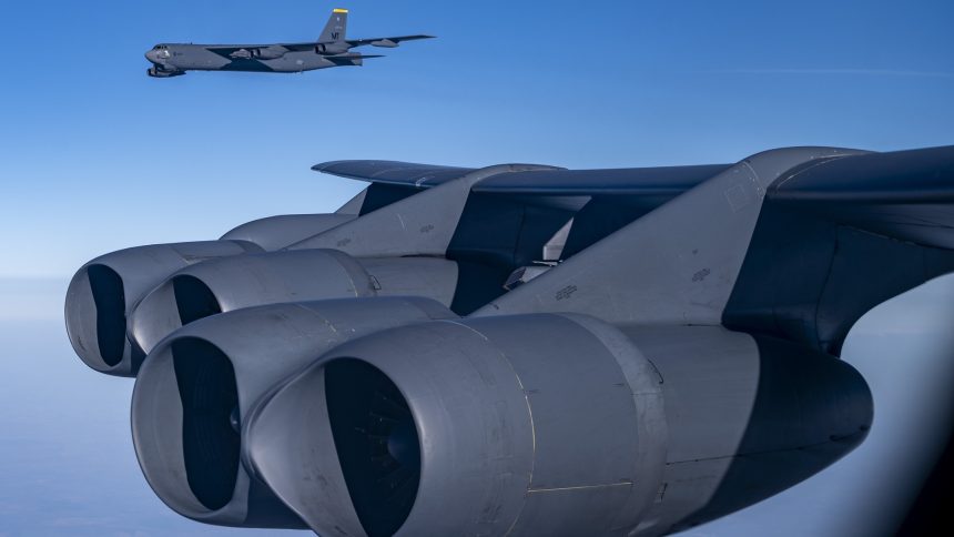 On Mar. 7, 2025, two U.S. Air Force B-52H Stratofortress bombers were tracked while orbiting over central Italy for about two and a half hours. The two bombers launched from RAF Fairford, in the United Kingdom, where they have been deployed since Feb. 11 for the Bomber Task Force 25-2 rotation.