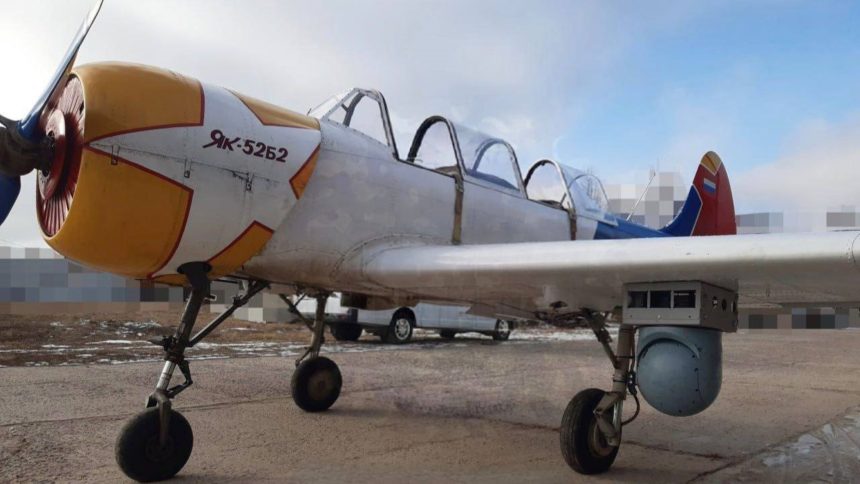 A Russian Yak-52B2 light-engine aircraft modified to shoot down Ukrainian long-range UAVs.