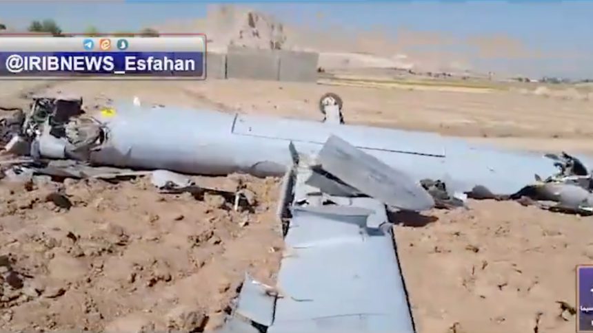 “This is one of the areas east of Isfahan. As you can see in the picture, around 5:00 AM this morning, the proud air defense of the Islamic Republic of Iran Army destroyed and shot down a highly advanced Hermes drone.