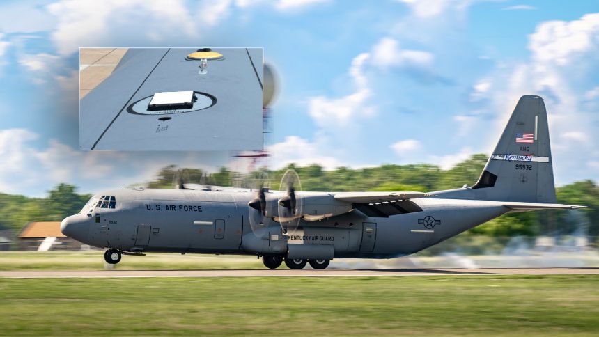 Col. Jeremy ‘Grimm’ Gould, Future Operations and Sensitive Activities division chief at Air Mobility Command called it a “successful use of several non-standard communications.” The “self-contained Roll On/Roll Off Hatch terminal” installed aboard the C-130 escape hatch “provided high-throughput connectivity with an automated primary, alternate, contingency, and emergency communication plan.”