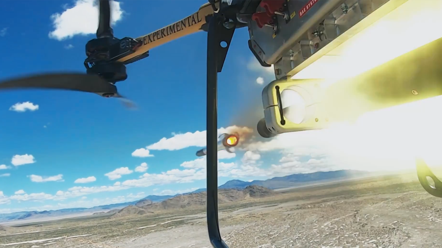 Munitions equipped with the Advanced Precision Kill Weapon System (APKWS) laser guidance kit were fired at both land and air targets from a modified variant of Malloy Aeronautics’ T-150 octocopter.