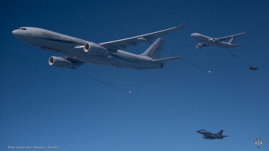 Live tracks from FlightRadar24 shared by ‘MilitaryNewsUA’ showed the three tankers, with the NATO MRTT flying with the callsign ‘MMF20’ and one of the French tankers flying with the callsign ‘VANT91.’ A Rafale was also visible, with the callsign ‘FAF7160.’