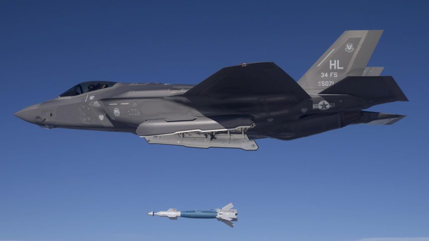 Screengrabs of the test’s video showed the GBU-12s striking the land targets one after the other. The F-35A can carry GBU-12s both in its internal weapons bays and externally on the underwing pylons.