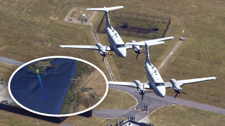 Since the Oct. 7, 2023 attack by Hamas against Israel, and Israel’s subsequent military response in Gaza, the United Kingdom’s Royal Air Force has kept a close eye on ongoing events using RAF Akrotiri-based Shadow aircraft. The Shadow, based on the Beechcraft B350, carries electro-optical/infrared sensors, as well as communications and electronics intelligence gathering equipment. Towards the end of July, the Shadow fleet at Akrotiri was reduced and some sorties taken over by privately contracted aircraft. For the purposes of this article, all references to the flights include both RAF and contracted missions.