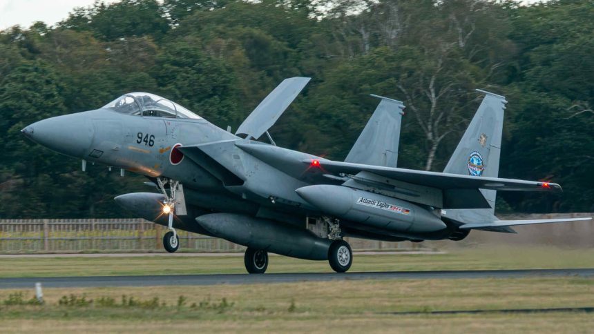 Few days after departing Chitose Air Base, the first two Japan Air Self-Defense Force F-15J Eagles arrived at RAF Coningsby in the UK on Sept. 18, 2025. The fighters were supported by a KC-46 and a KC-767 tankers, as well as two C-2 cargo aircraft – one of which preceded the fighters and arrived in the UK on Sept. 17.
