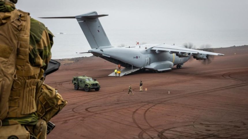 The RAF A400M Atlas (British designation Atlas C.1), assigned to the 206 Squadron at RAF Brize Norton, transported the JLTV from “pre-positioned locations in Norway” to Jan Mayen to underscore its importance as a “key node for transatlantic supply routes and freedom of navigation in the Arctic.”