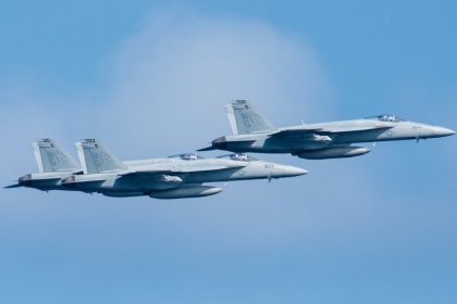 U.S. F/A-18Es performed an airborne change of command in the skies near the disputed South China Sea islands