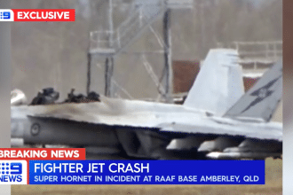 The Royal Australian Air Force F/A-18F veered off runway after the two…