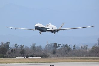 U.S. Navy MQ-4C Triton Drone Performs Gear Up Landing At Point Mugu