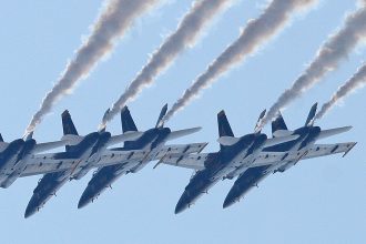 Blue Angels F/A-18s Make Contact And “Swap Paint” During Flyover: Pilots Land Aircraft Safely.