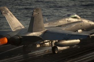 Two Russian TU-142 Bears fly close to USS Reagan that launches four (armed) Hornets in response