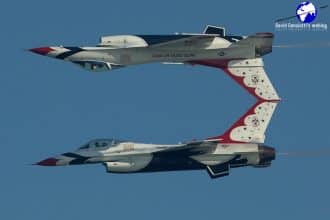 Thunderbirds opposing solos perfect symmetry (it's also a matter of observer's point of view)