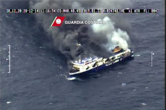 Photos from Aircraft involved in rescue mission to evacuate people trapped on burning ferry