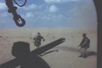 This photo shows the first combat rescue behind enemy lines in Iraq