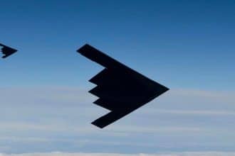 B-2 Spirit Bombers arriving to RAF Fairford, UK, as seen from an…