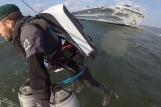Watch These Crazy Videos Of Ex-Royal Marines Flying With Jet-Powered Flying Suit From UK’s Largest Aircraft Carrier