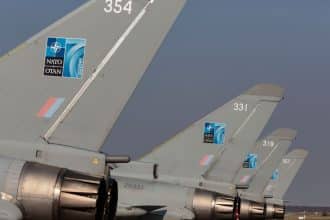 Royal Air Force Typhoon FGR4 jets from RAF Coningsby arrived in Estonia…
