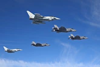 [Photos] Eurofighter Typhoons escort three British and American F-35Bs arriving in the UK for the first time