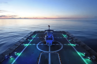 Gorgeous time lapse video shows a US Seahawk helicopter conducting deck landing qualifications at dusk