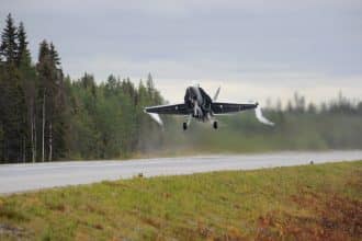 Finnish and Swedish aircraft take off and land on roads as part…