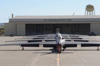 [Photo] Five U-2 Spyplanes lined up in front of 9th RW hangar at Beale Air Force Base