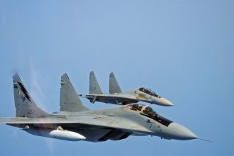 An interesting image taken during a formation flight of MiG-29 fighter jets…