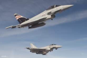 Air-to-Air image of RAF Typhoon Display Jet’s first flight with newly painted tail