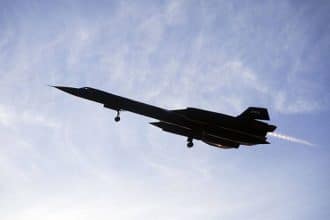 Cracking shot shows SR-71 Blackbird flying on one afterburner only
