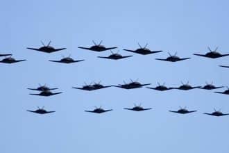A scene never to be repeated again: a sky filled with black stealth fighter jets