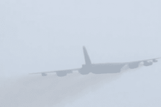 All weather nuclear deterrence: B-52 bombers mass launch out of the fog