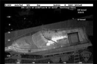 Thermal images of the Boston bomber hiding in a backyard boat taken by a helicopter’s IR camera