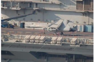Chinese aircraft carrier spotted with mock Shenyang J-15 combat plane on board