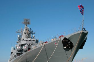 The Guided Missile Cruiser "Moskva", the flagship of the Russian Navy Black…