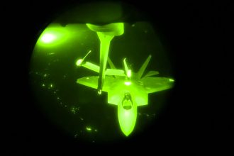 Jaw-dropping NVG video of F-22 Raptors refueling at night during air strikes on Daesh