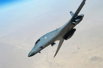 Cool shot of a B-1 bomber departing the tanker like a boss during air strike on ISIS