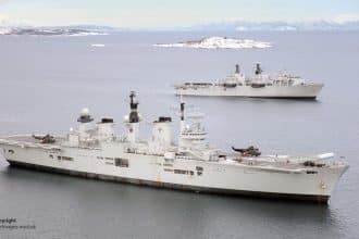 The British helicopter carrier HMS Illustrious (nicknamed "Lusty")ย along with the amphibious…