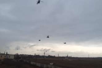 [Video] 11 Russian gunship helicopters flying into Ukrainian airspace over Crimea
