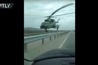 In Russia’s Chechen Republic, Car’s Dashcam Captured A Helicopter Flying So Low It Almost Hit Cars On Major Highway
