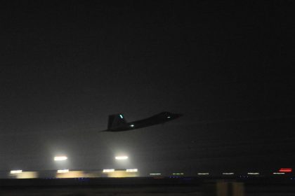 Why this photo of an F-22 Raptor stealth jet taking off for a night air strike in Syria is interesting