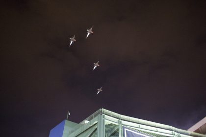 [Photo] Four F/A-18 Hornets fly over Fenway Park before the first game of the 2013 World Series