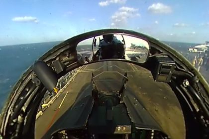 This 360ยฐ video of a “Jolly Rogers” Super Hornet launching from an aircraft carrier catapult is awesome!