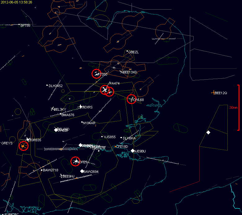 [Animation] The Queen's Diamond Jubilee flypast over London as seen from a radar-like computer display
