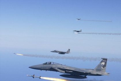 "Fox 1 away": four F-15s firing live air-to-air missiles. At the same time.