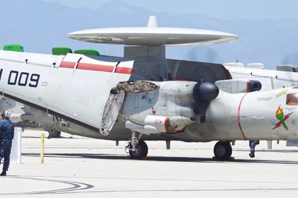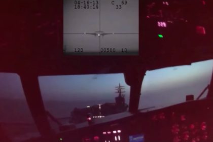 This is what it looks like when you land an E-2C Hawkeye on an aircraft carrier at night