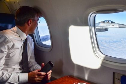 Photo of Secretary General of NATO aircraft escorted by Dutch F-16s over the Baltic enroute to Estonia